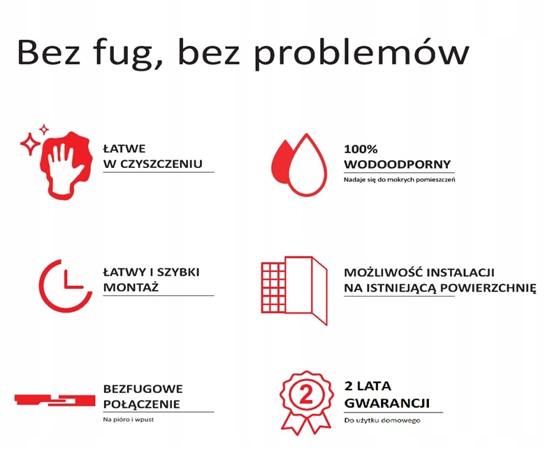 - Nasze płyty łączy się systemem pióro & wpust w połączeniu z klejem daje to wodoszczelne wykończenie.