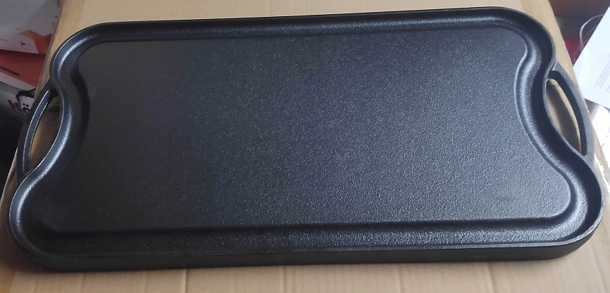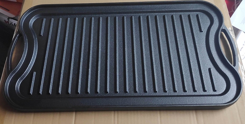 Płyta z żeliwa dwustronna- z jednej strony grillowana, z drugiej gładka płyta. Dosyć długa płyta.