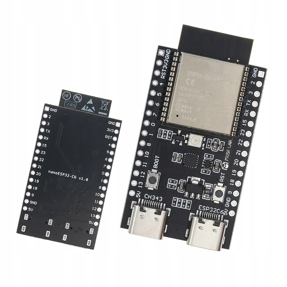 - Układ ESP32-C6, jednordzeniowy 32-bitowy RISC-V