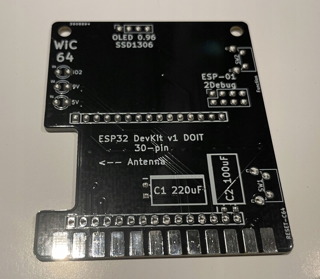 Płytka drukowana do projektu WIC64 do komputera Commodore 64. Jeden z najtańszych projektów opartych na ESP32 do połączenia C64 z internetem.