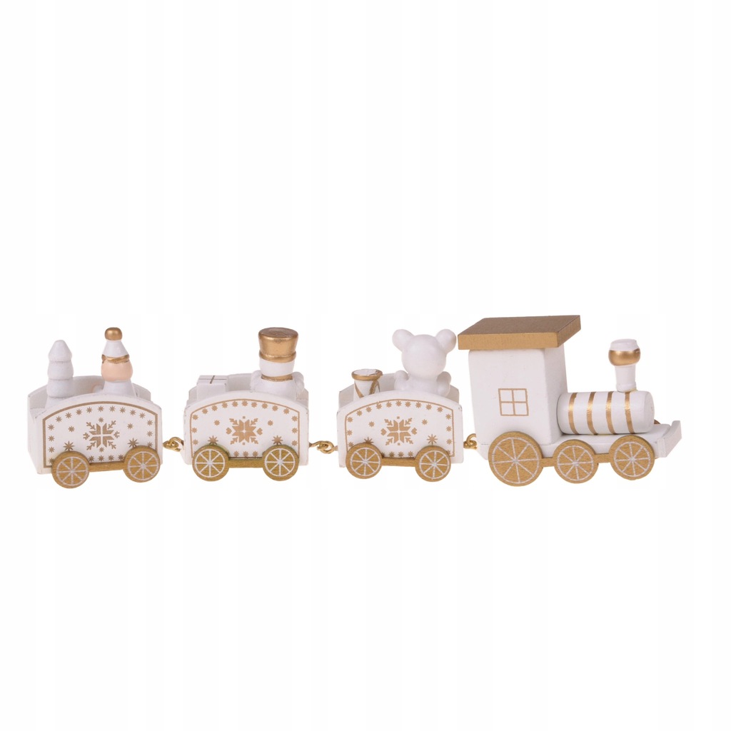 Idealna dekoracja świąteczna - drewniany pociąg. Pomalowany na biało i przyozdobiony złotymi detalami doskonale wpisze się w bożonarodzeniowy klimat.