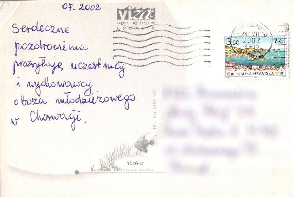 „Serdeczne pozdrowienia przesyłają uczestnicy i wychowawcy obozu młodzieżowego w Chorwacji.”