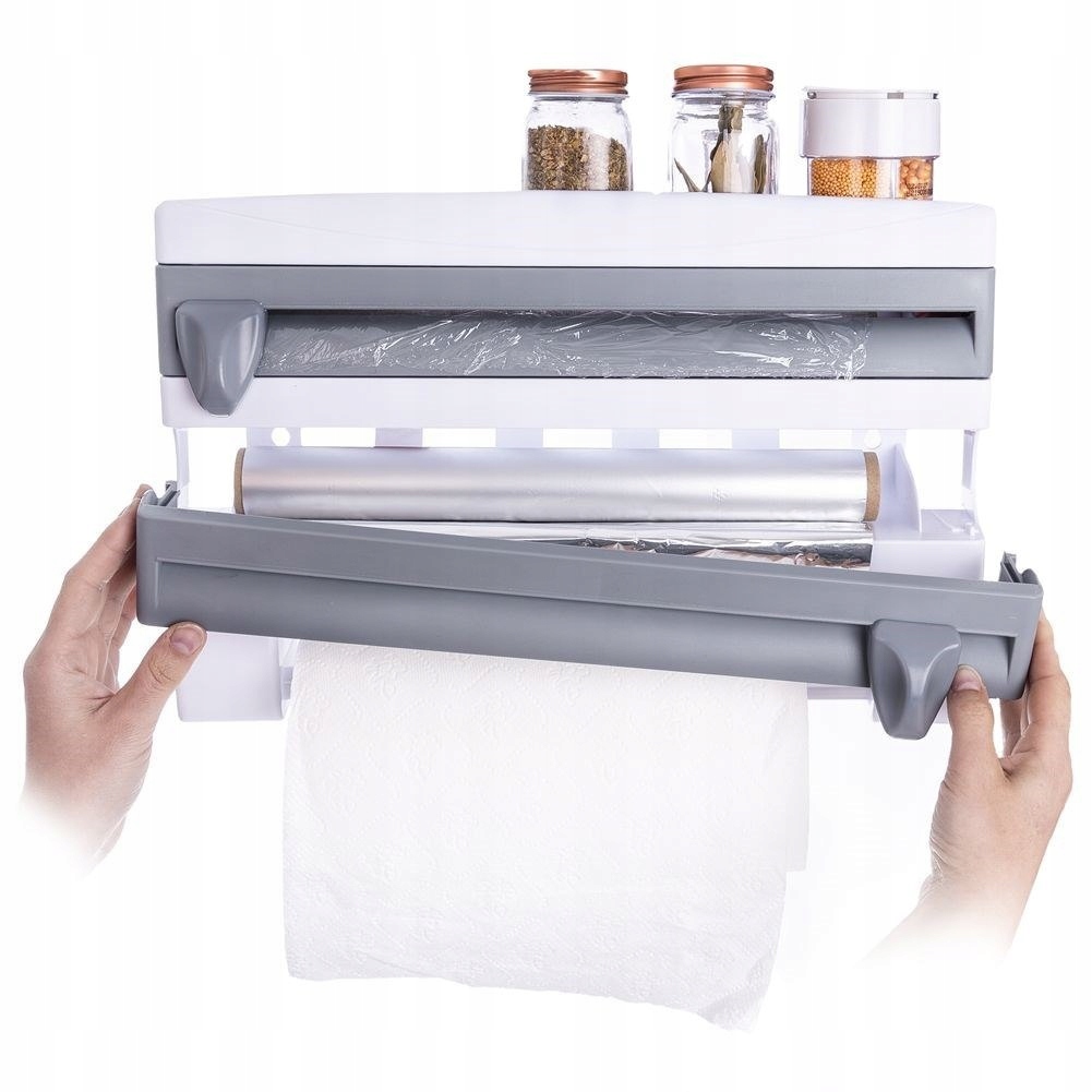 - WYGODNY - Zapewnia szybki dostęp do folii spożywczej, ręczników kuchennych oraz folii aluminiowej. Posiada dwa ostrza do wygodnego obcinania folii.