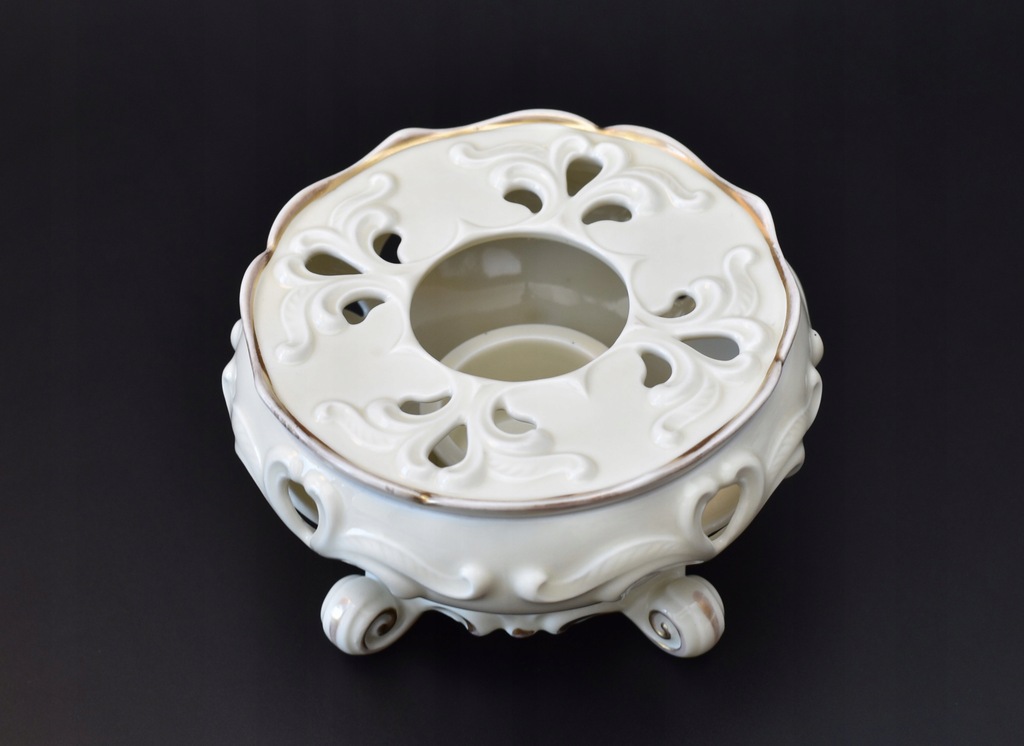 Porcelanowy podgrzewacz z manufaktury Rheinholda Schlegelmilcha, która znajdowała się dawniej w Tułowicach.