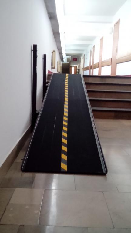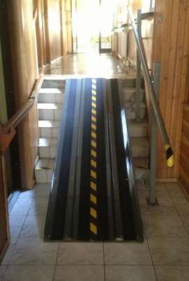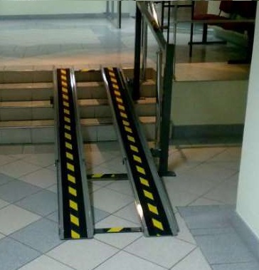 Podjazdy ułatwiają przemieszczanie się wózkami (dziecięcymi jak i inwalidzkimi) po schodach.