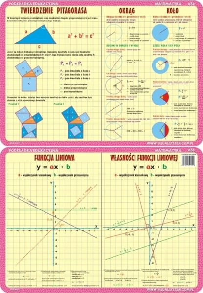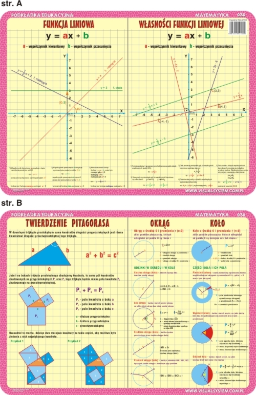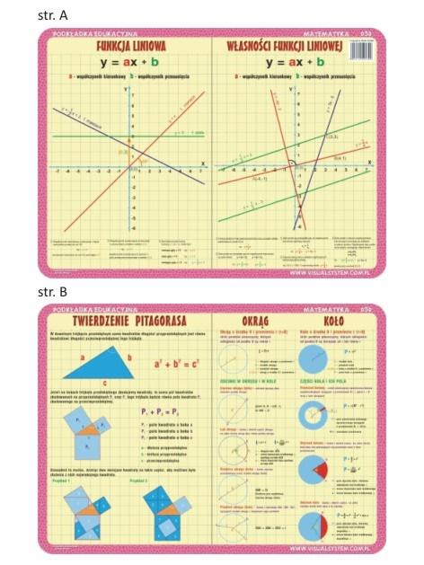 Podkładka edukacyjna. Twierdzenie Pitagorasa, okrąg i koło, funkcja liniowa, funkcja liniowa