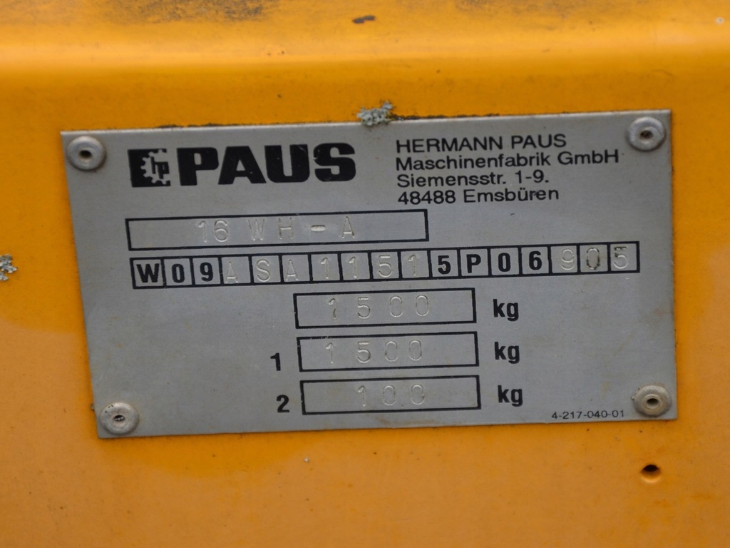 Podnośnik Dachowy Winda Platforma PAUS ASA 16 WH