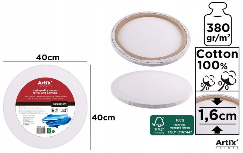 PODOBRAZIE OKRĄGŁE PŁÓTNO MALARSKIE 40X40X1.6 CM