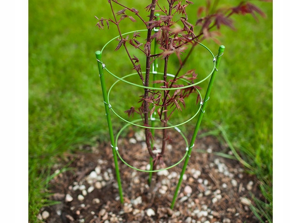 Konstrukcja ta składa się z trzech metalowych pierścieni, który jest umieszczany wokół łodygi rośliny, a następnie mocowany do podłoża.