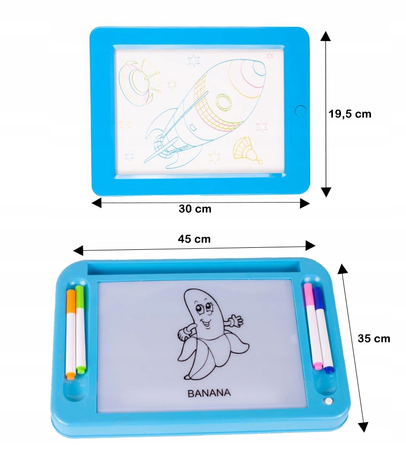ZESTAW DWÓCH PODŚWIETLANYCH TABLIC do rysowania z pisakami, okularami 3D i szablonami