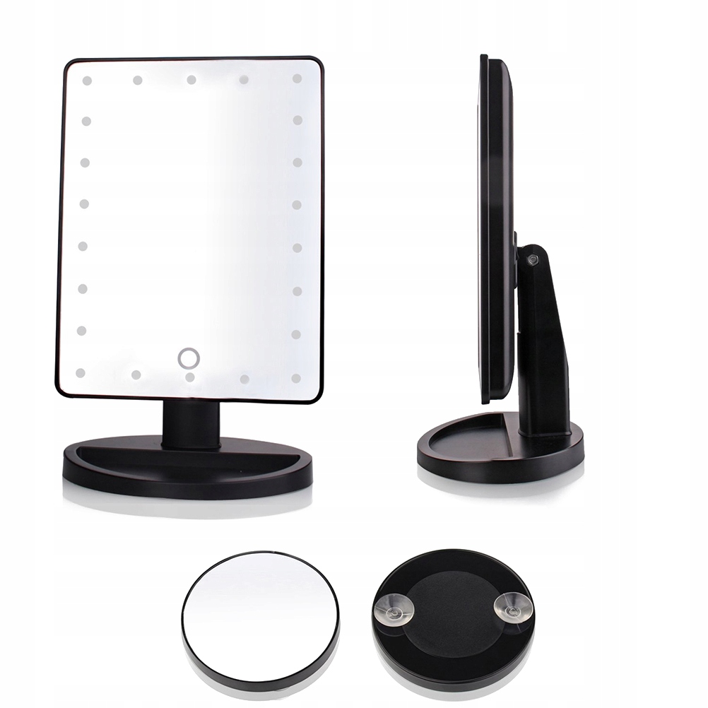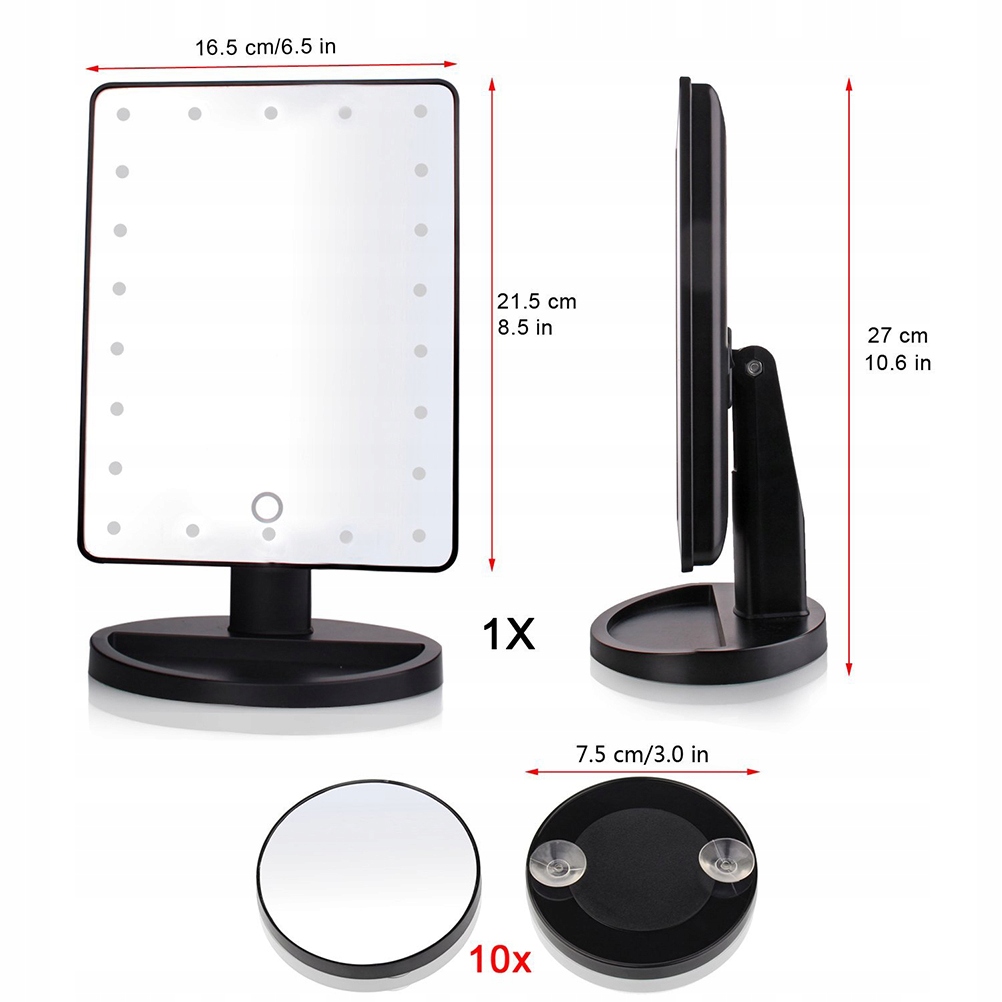 1 x podświetlane lusterko do makijażu lusterko kosmetyczne z 22 diodami LED Ekran dotykowy Możliwość przyciemniania Zdejmowane 10-krotne powiększające lusterka punktowe Obrót o 180 ° Obrót o 180 ° Bateria Zasilanie USB (czarny)