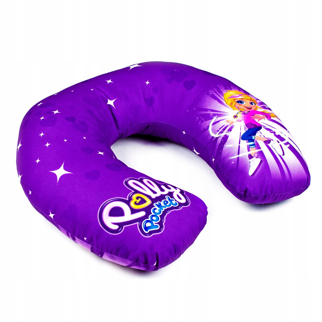 Poduszka Polly Pocket to wspaniała podróżna poduszka będzie doskonałym dodatkiem dla wszystkich fanów Polly Pocket. Idealnie sprawdzi się podczas podróży samochodem, pociągiem lub samolotem. Doskonale nadaje się do spania w pozycji siedzącej, dzięki podtrzymywaniu głowy w sposób nienadwyrężający mięśni karku. Utrzymuje właściwą pozycję szyjnego odcinka kręgosłupa. Pianka termoplastyczna idealnie dopasowuje się do kształtu ciała podpierając kręgosłup w naturalnej pozycji.