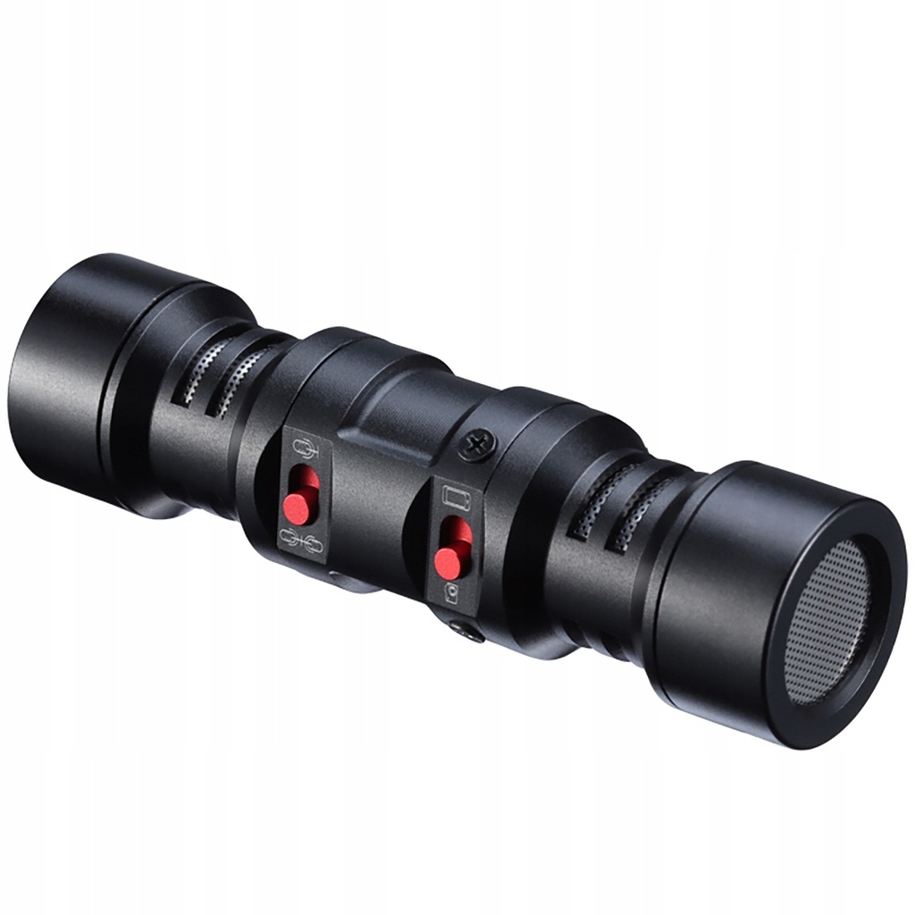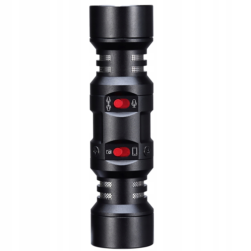 Dwie kopuły. mikrofon kierunkowy posiadający możliwość nagrywania z obu stron jednocześnie. Przełączniki na mikrofonie pozwalają szybko wybrać czy chcemy nagrywać dźwięk z obu mikrofonów, czy tylko z jednego.