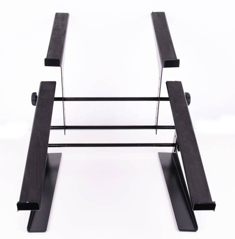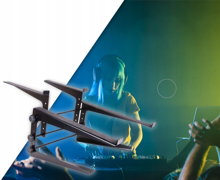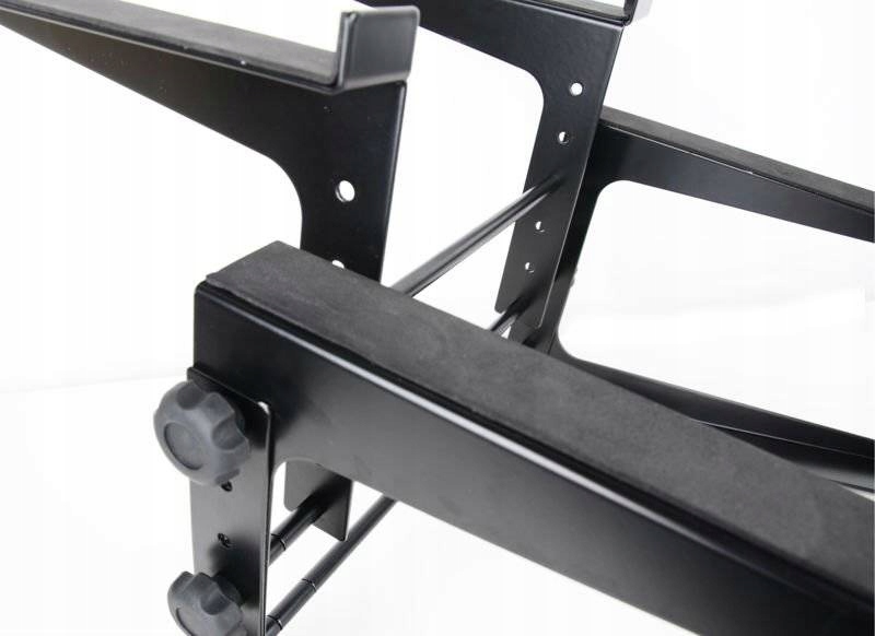 Zaprojektowany specjalnie z myślą o wygodzie i funkcjonalności podczas pracy na scenie. Jego podwójna, dwupiętrowa konstrukcja pozwala na równoczesne umieszczenie laptopa oraz dodatkowego urządzenia, takiego jak kontroler czy odtwarzacz CD. Dzięki temu masz wszystkie niezbędne narzędzia w zasięgu ręki, co ułatwia płynne przejścia między utworami i manipulację dźwiękiem.
