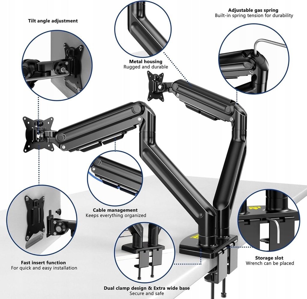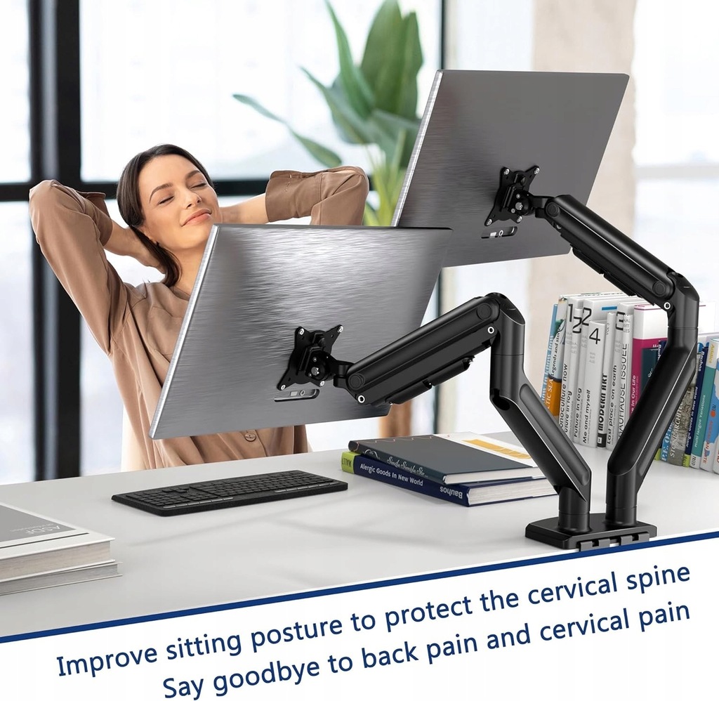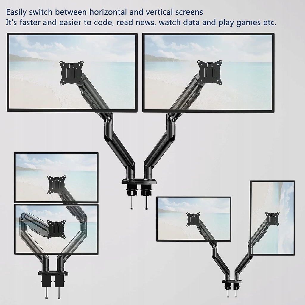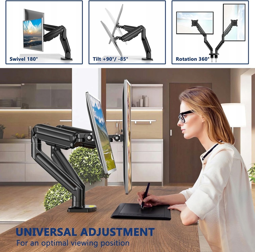 【W pełni ruchome stojaki na monitory】 Podwójny stojak na monitor ze sprężyną gazową umożliwia