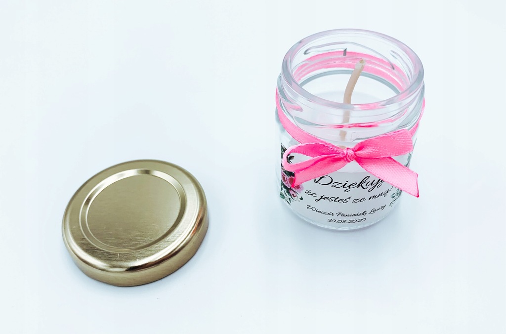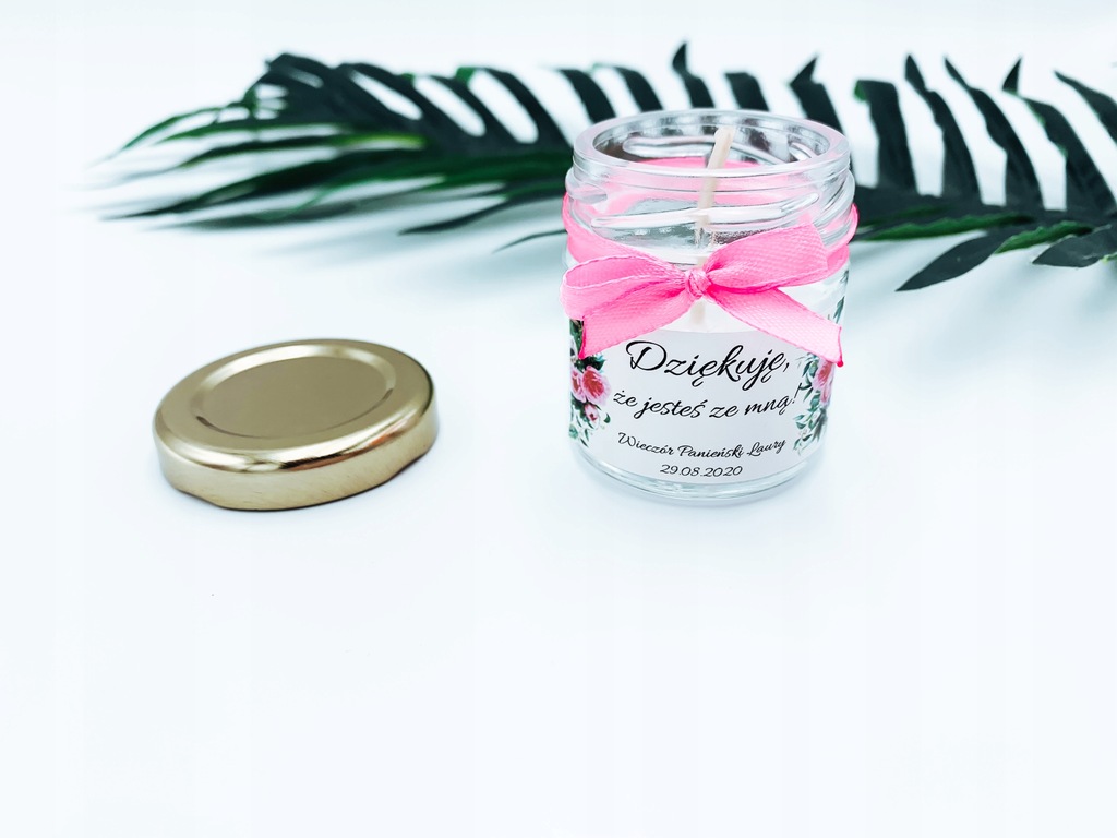 Podziękowanie dla dziewczyn za obecność na wieczorze panieńskim w formie zapachowej świeczki w słoiczku.