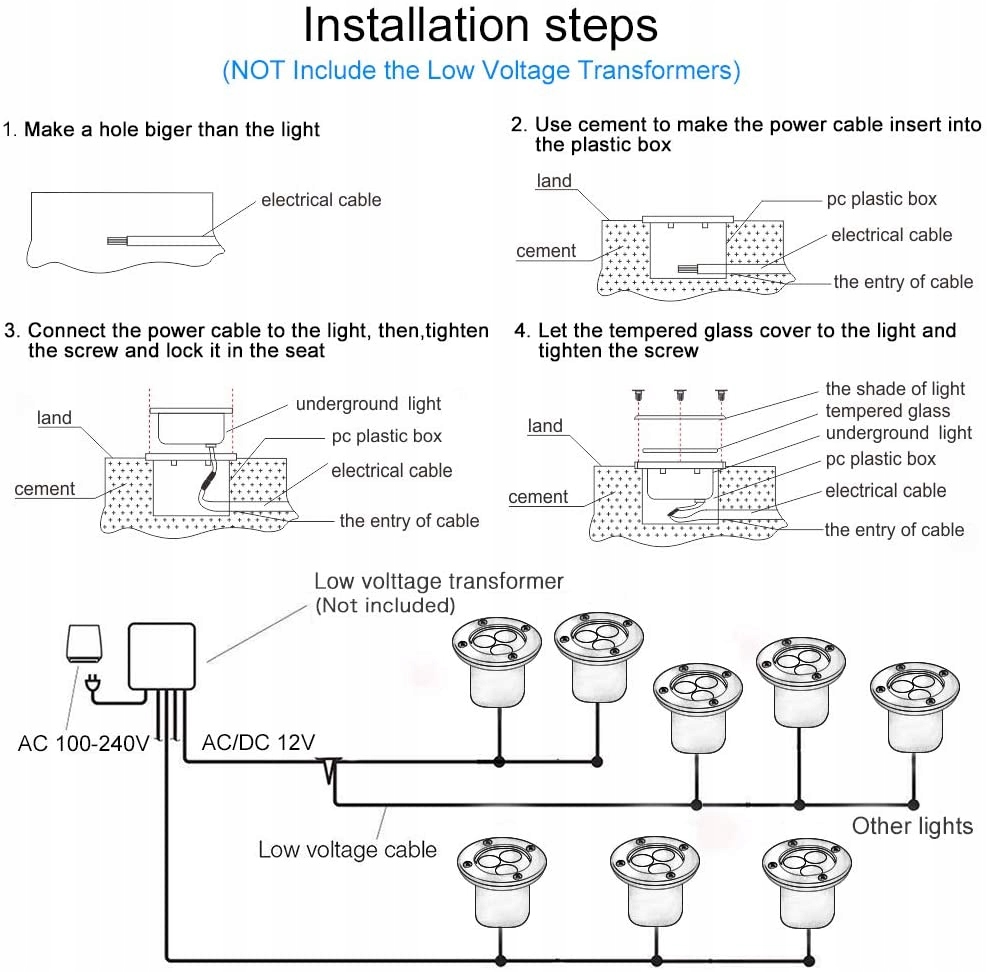 - ❉[Bezpieczeństwo niskiego napięcia]: Napięcie robocze 12 V, kompatybilne z większością niskonapięciowych transformatorów oświetleniowych. Bezpieczniejsze w obsłudze i bardziej ekonomiczne w eksploatacji niż zwykłe oświetlenie wysokonapięciowe. (Transformator niskiego napięcia używany do przesyłania 100 V-240 V do 12 V i zasilania światła. Uwaga: transformator NIE JEST WLICZONY W CENĘ).
