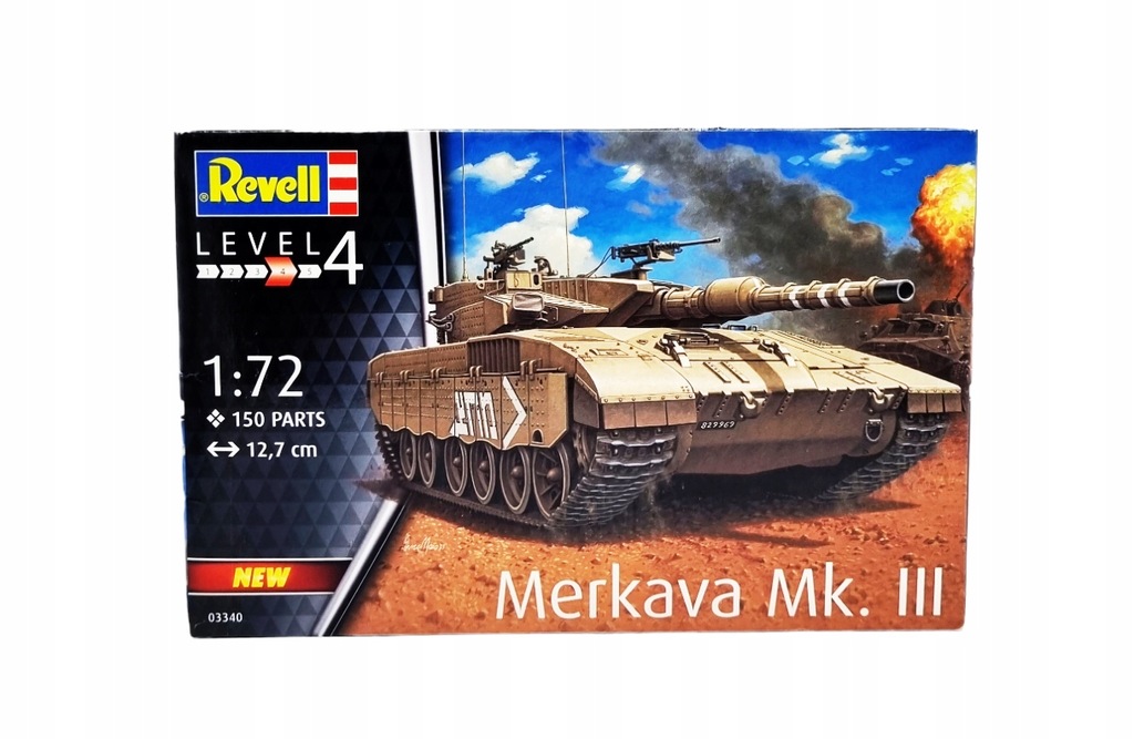 Merkava Mk.III - izraelski czołg postawowy. Zalecane kolory farb: 32109,32139, 32183, 32189, 32191. Plastikowy model do sklejania Revell ( REV-03340 ) nie zawiera w komplecie farb i kleju. Specyfikacja Numer katalogowy:REV-03340 Producent: Revell Długość:127 mm Szerokość:53 mm Wysokość:39 mm Skala:1:72 Stopien trudności:4 Ilość elementów:150 Instrukcja:tak Grupa wiekowa:12+