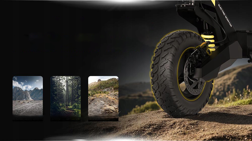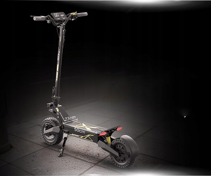 Ergonomiczny uchwyt i szersze pedały 50 × 23 cm zostały zaprojektowane z myślą o długiej jeździe; połączenie przednich i tylnych amortyzatorów oraz opon terenowych znacznie zmniejsza nierówności, dzięki czemu możesz cieszyć się jedwabiście płynną jazdą nawet w skomplikowanych warunkach drogowych.