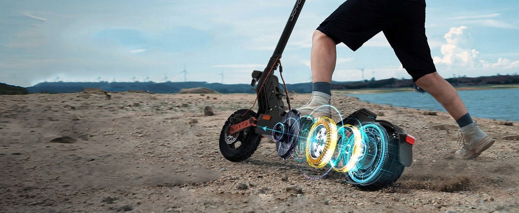 JOYOR S5-pro(ABE) został zaprojektowany dla entuzjastów outdooru, którzy poszukują płynnej jazdy i najlepszych wrażeń w terenie. System zawieszenia o wysokiej elastyczności wahacza zapewnia doskonałą amortyzację wstrząsów, zapewniając płynną jazdę nawet podczas pokonywania wyboistych dróg i dziur. Unikalna konstrukcja może skutecznie pochłaniać uderzenia z podłoża i redukować wibracje nadwozia pojazdu. Wyposażony w opatentowany system zawieszenia amortyzującego możesz jeździć tak, jakbyś chodził po płaskim terenie, ciesząc się jednocześnie fascynującymi wrażeniami wizualnymi.