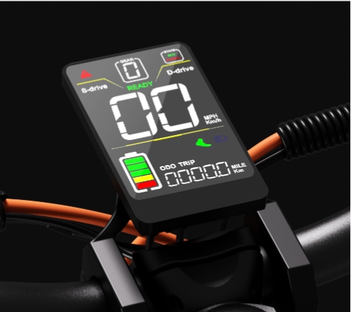 Zintegrowany wyświetlacz pokazuje w czasie rzeczywistym prędkość pojazdu, poziom naładowania akumulatora, zasięg i inne kluczowe informacje.