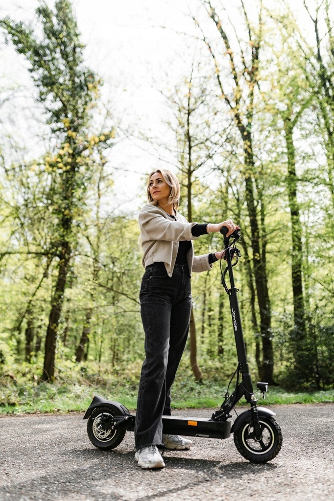 Popraw swoją jazdę dzięki podwójnemu systemowi zawieszenia Joyor. Ta najwyższej klasy technologia, zaprojektowana z myślą o komforcie bez tarcia, zapewnia optymalną amortyzację, dzięki czemu możesz bez wysiłku ślizgać się po każdym terenie.