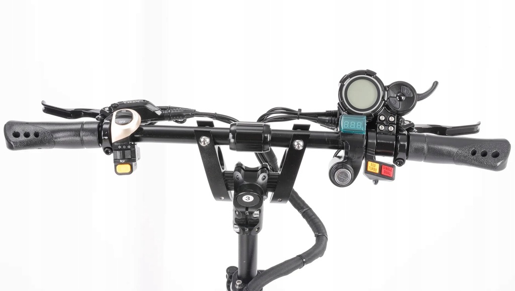 - Hamowanie system: przednie i tylne hamulce hydrauliczne, hamulce elektryczne