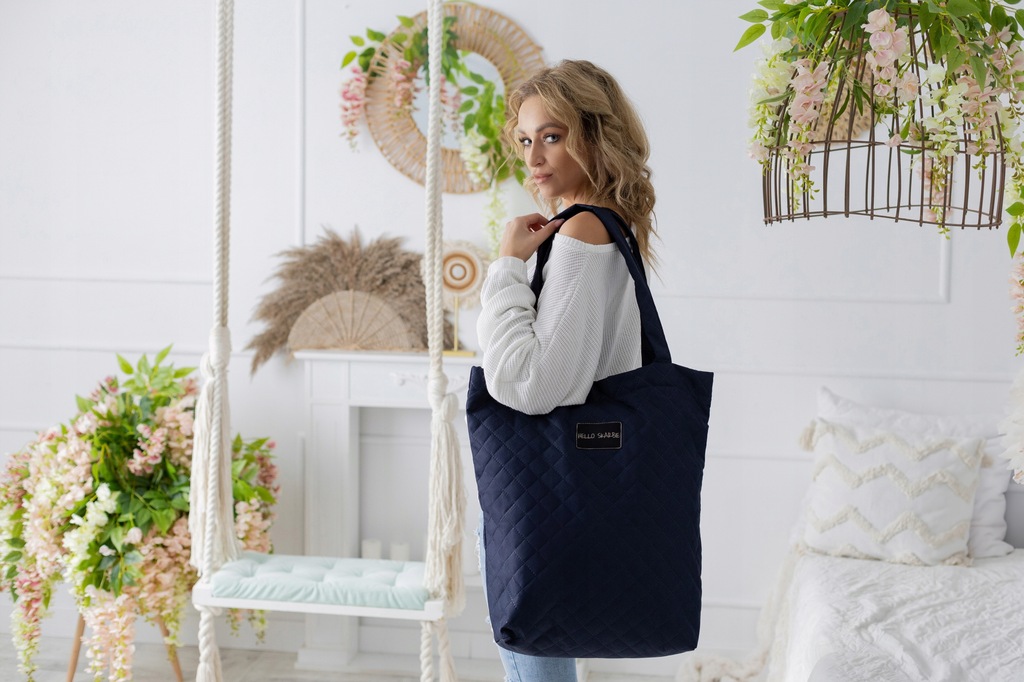 Torba ozdobna granatowa mała dla mamy do szpitala Hello Skarbie 50x50x20