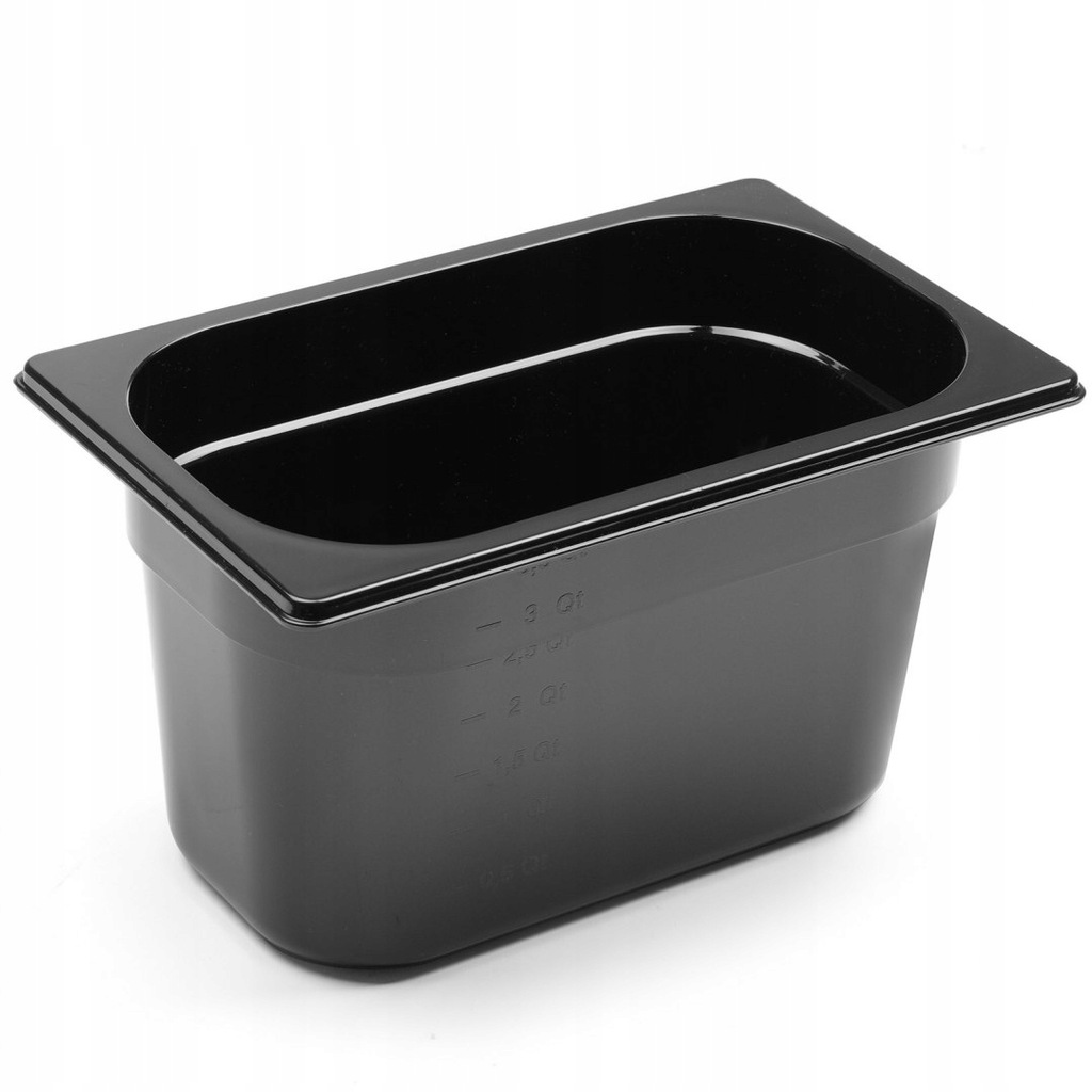 Pojemnik gastronomiczny GN 1/4 z czarnego poliwęglanu 265x162x150mm 4L Hendi 862612