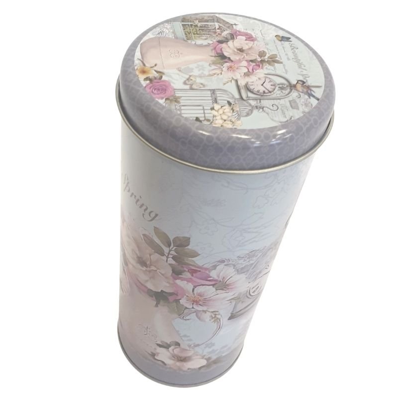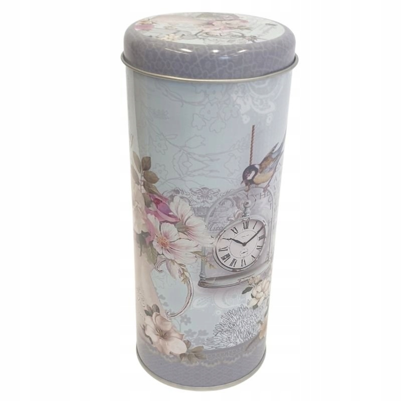 Pokrywa jest wykonana z metalu i szczelnie zamyka pojemnik - naniesiony wzór w kolorach puszki