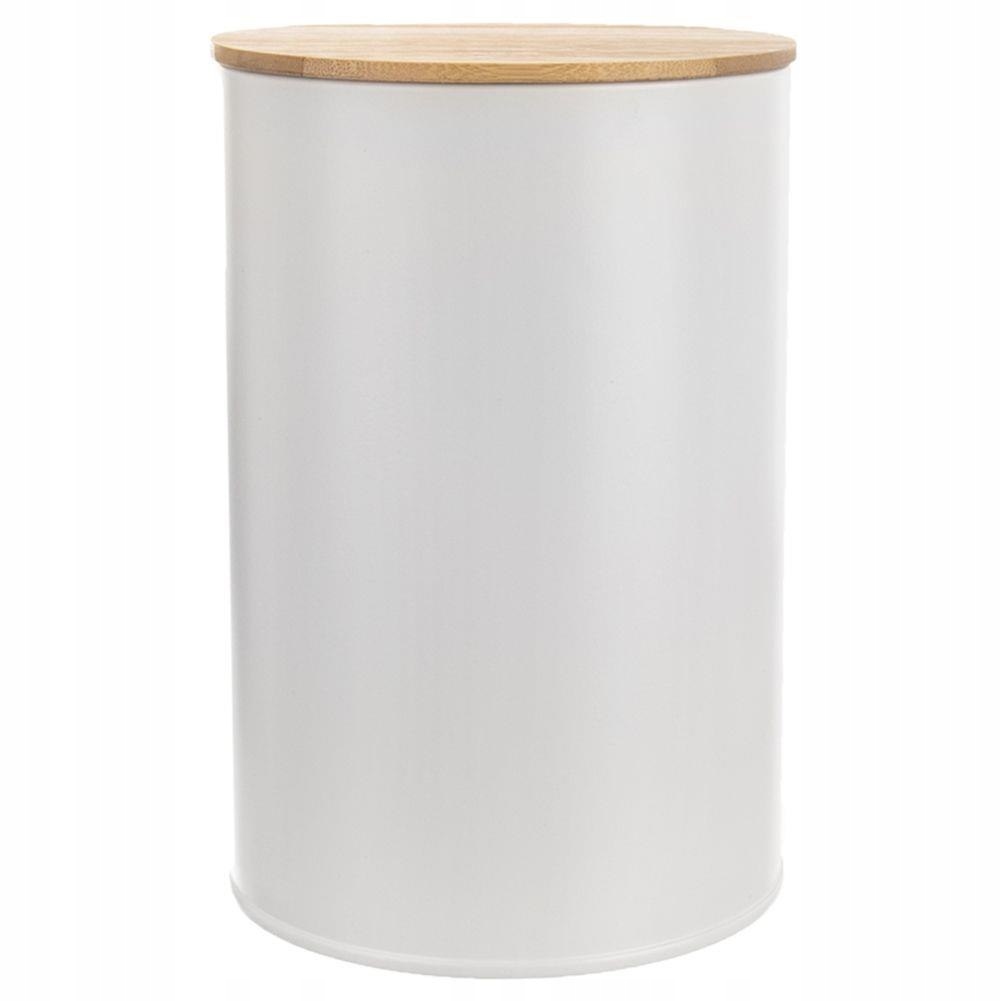 ✔️ SOLIDNY - Słoik wykonany z metalu w kolorze białym. Pokrywka wykonana z drewna bambusowego.