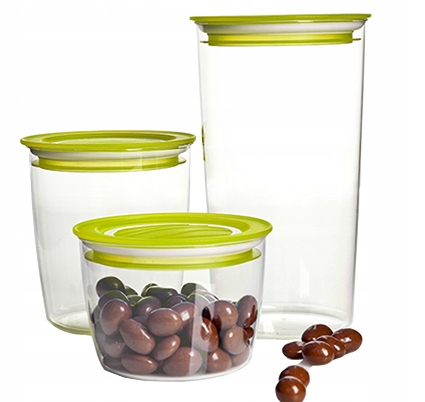Pojemnik na artykuły sypkie z serii CRISTALLO, umożliwia układanie jeden na drugim, posiada ergonomiczną pokrywę z gumową uszczelką, którą można łatwo otworzyć i zamknąć. Przyjazny dla środowiska, bezpieczny dla żywności plastik sprawia, że pudełko jest idealnym schowkiem w domu alergików. W sprawdzonej jakości marki Rotho seria pojemników CRISTALLO gwarantuje wieloletnią trwałość. Pojemniki do przechowywania żywności z tej serii można myć w zmywarce, są dostępne w rozmiarach: 0,4 l, 0,7 l oraz 1,2l.