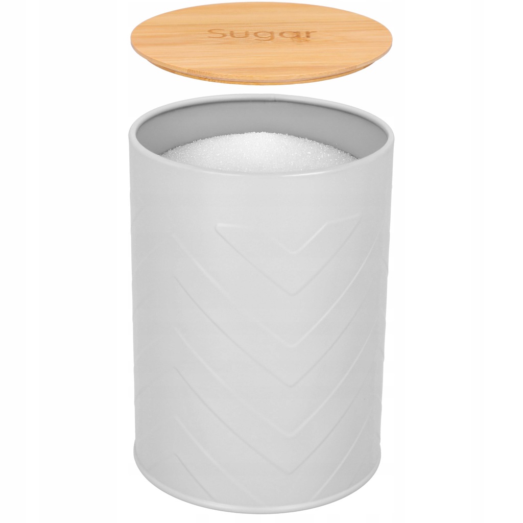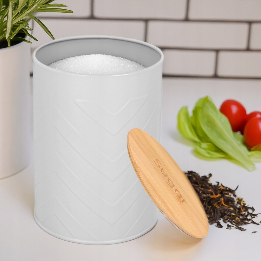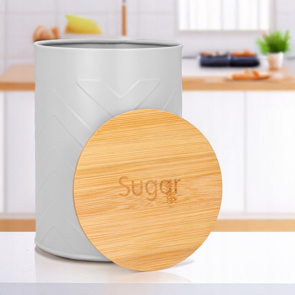 POJEMNIK NA CUKIER metalowy szary szczelny pojemnik bambusowy 1,4l