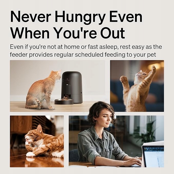- Dzięki zasilaniu bateryjnemu ciesz się wygodą bezprzewodowego użytkowania. Jeśli chcesz trzymać z dala bawiące się szczeniaki lub uniemożliwić dzieciom dostęp do karmy dla kotów, umieszczenie go wysoko jest idealnym wyborem do samodzielnego karmienia. Oczywiście można go również umieścić w różnych miejscach, aby zaspokoić potrzeby wielu kotów jedzących w tym samym czasie.