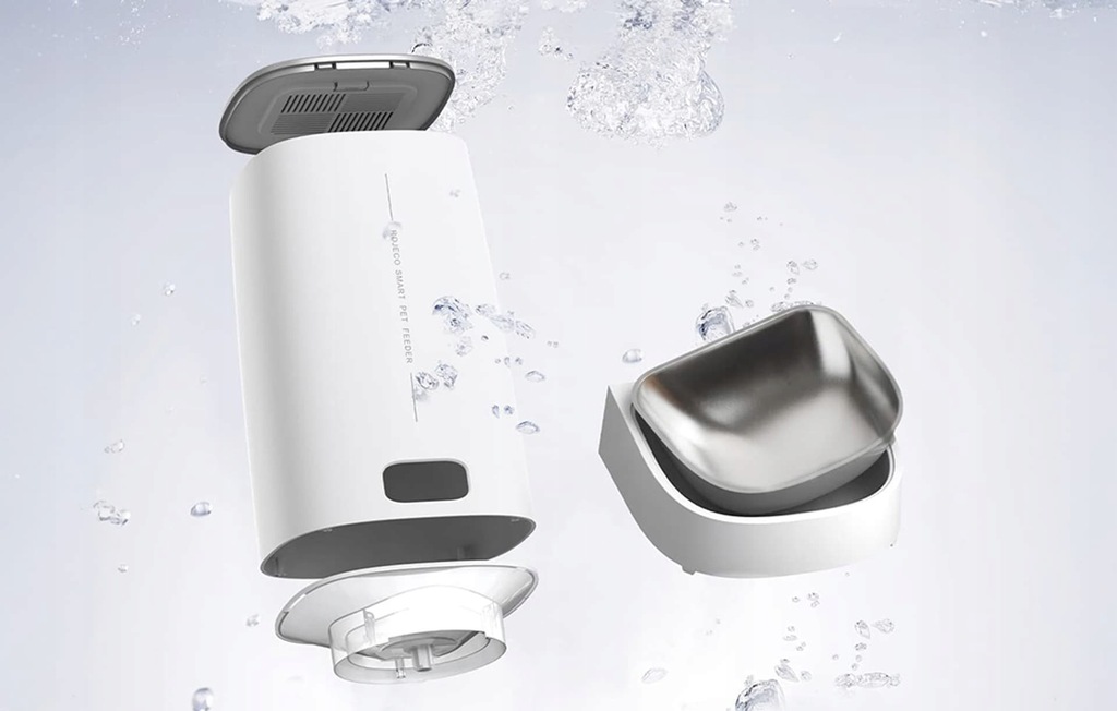 Konserwacja dozownika nie sprawi Ci kłopotu. Możesz wygodnie zdemontować zbiornik, jego pokrywę, podstawę i miskę, a następnie umyć poszczególne elementy, aby zapewnić swojego ukochanemu pupilowi higieniczne warunki podczas posiłków.