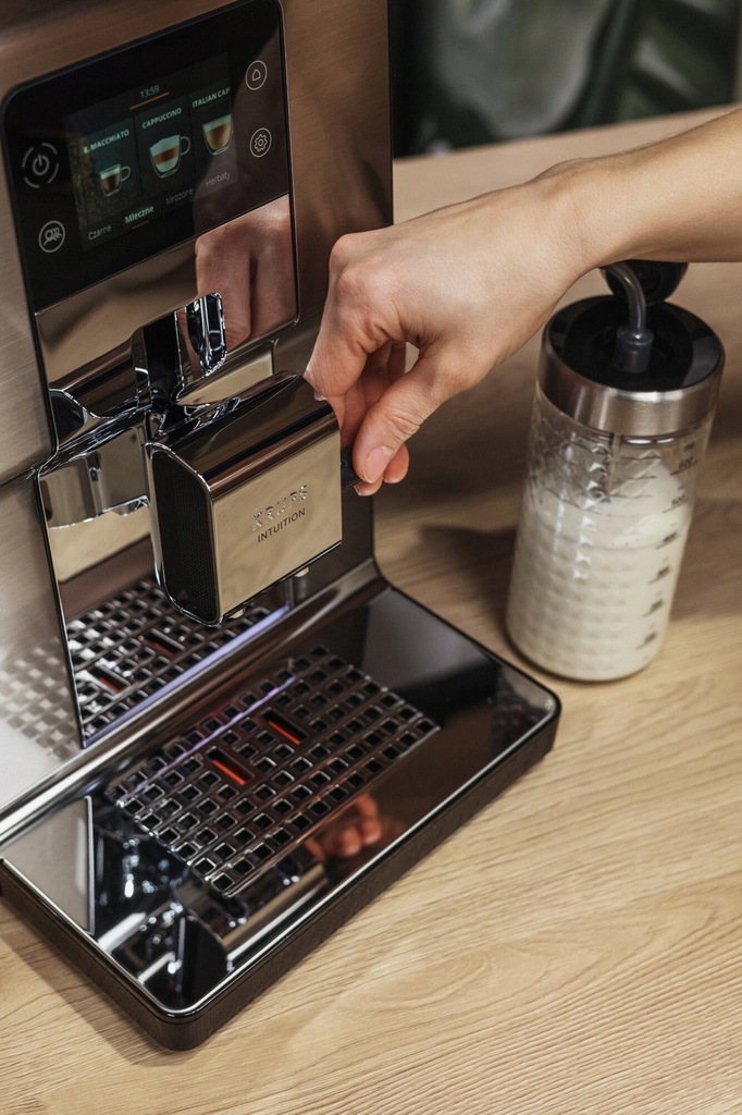 Karafka na mleko XS804 do ekspresów automatycznych KRUPS o pojemności 600 ml pozwoli Ci przygotować doskonałe napoje mleczne z idealnie kremową pianką.