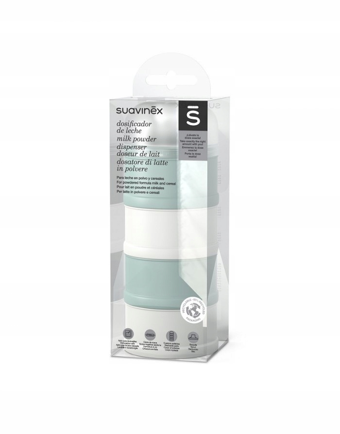 Pojemnik - dozownik na mleko w proszku Suavinex jest idealny, aby zawsze mieć pod ręką odpowiednią dawkę mleka w proszku lub płatków śniadaniowych, które dziecko powinno zjeść.