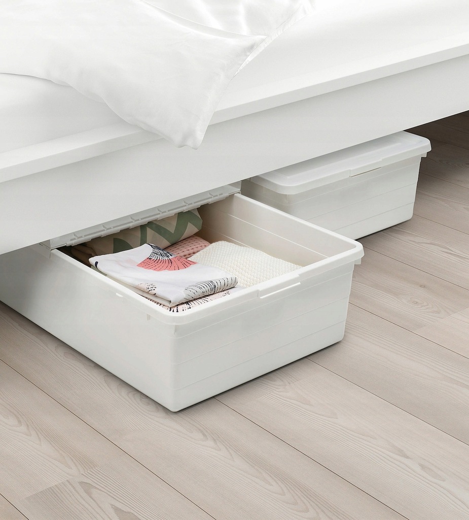 Niezastąpiony w każdym domu, jest idealny do przechowywania pościeli, koców i ubrań sezonowych, które włożone do niego będą nie tylko uporządkowane, ale także dobrze zabezpieczone przed kurzem i ewentualnym zabrudzeniem. Pojemnik wraz z zawartością można umieścić pod łóżkiem w sypialni, w garderobie lub na szafie – w ten sposób zyskasz dodatkowe miejsce do przechowywania bez konieczności kupowania kolejnego mebla, a także maksymalnie wykorzystasz przestrzeń w swoim domu. Proste rozwiązania są zawsze najlepsze!