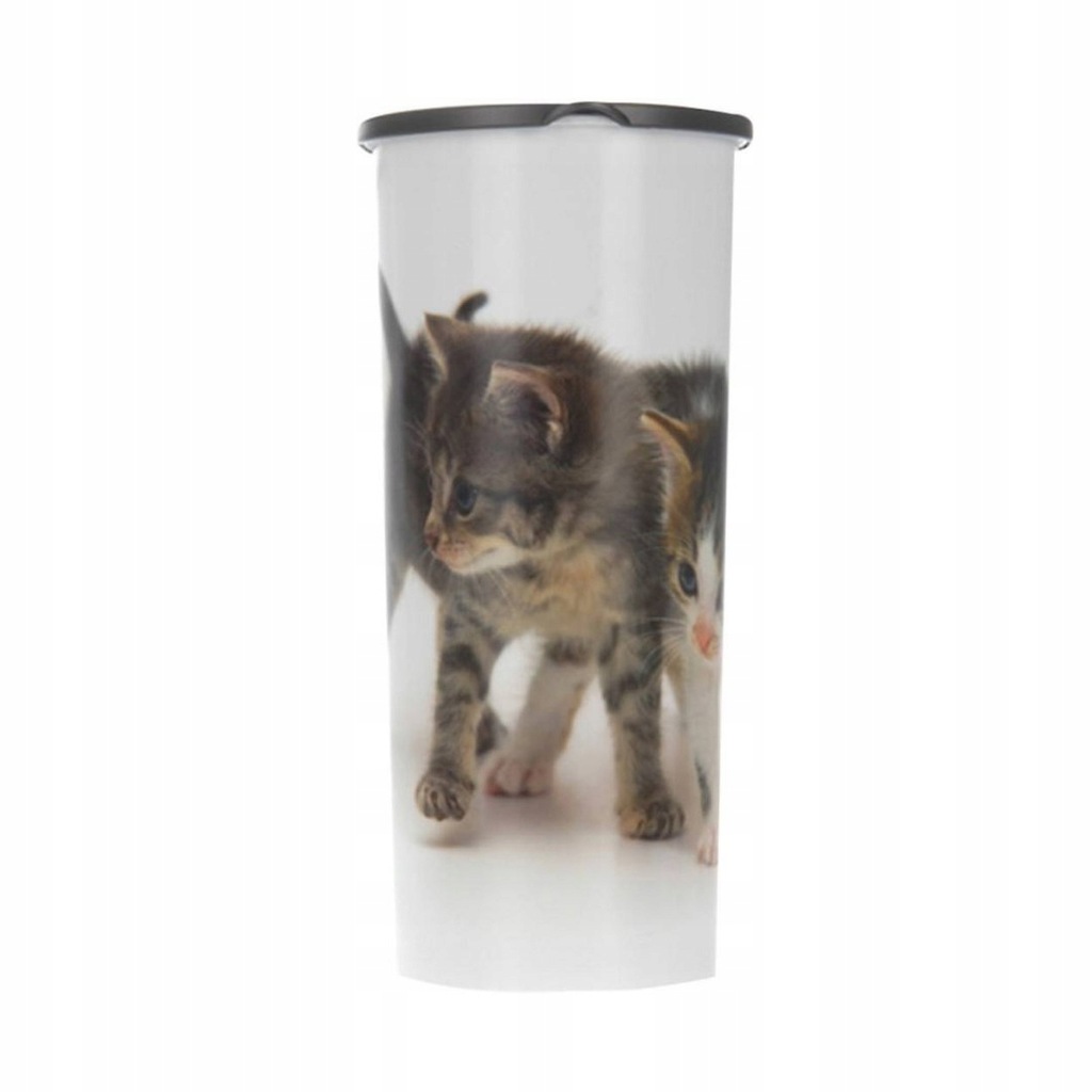 Praktyczny pojemnik na suchą karmę dla kota, który pozwoli na dłuższe zachowanie świeżości pożywienia. Dzięki szczelnej pokrywie przechowywanie karmy jest o wiele bardziej higieniczne, a do środka nie dostaje się wilgoć ani kurz. Pojemnik posiada przyjemny nadruk przedstawiający kocięta. Przypadnie zatem do gustu zarówno starszym, jak i młodszym domownikom.