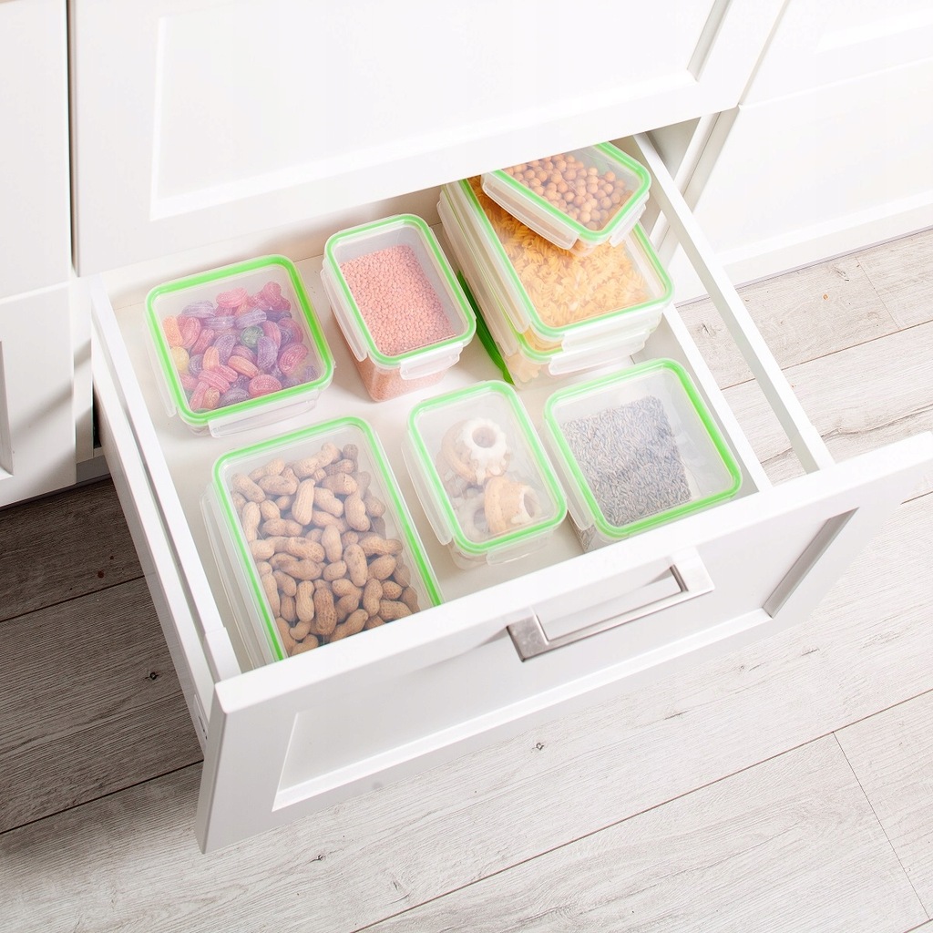 Na tej aukcji kupują Państwo: pojemnik CLIC & LOCK ROTHO o pojemności 0,8 l w kolorze transparentnym/zielonym. Poniższa aranżacja może prezentować inne warianty kolorystyczne i pojemności dostępne na naszych pozostałych aukcjach allegro.