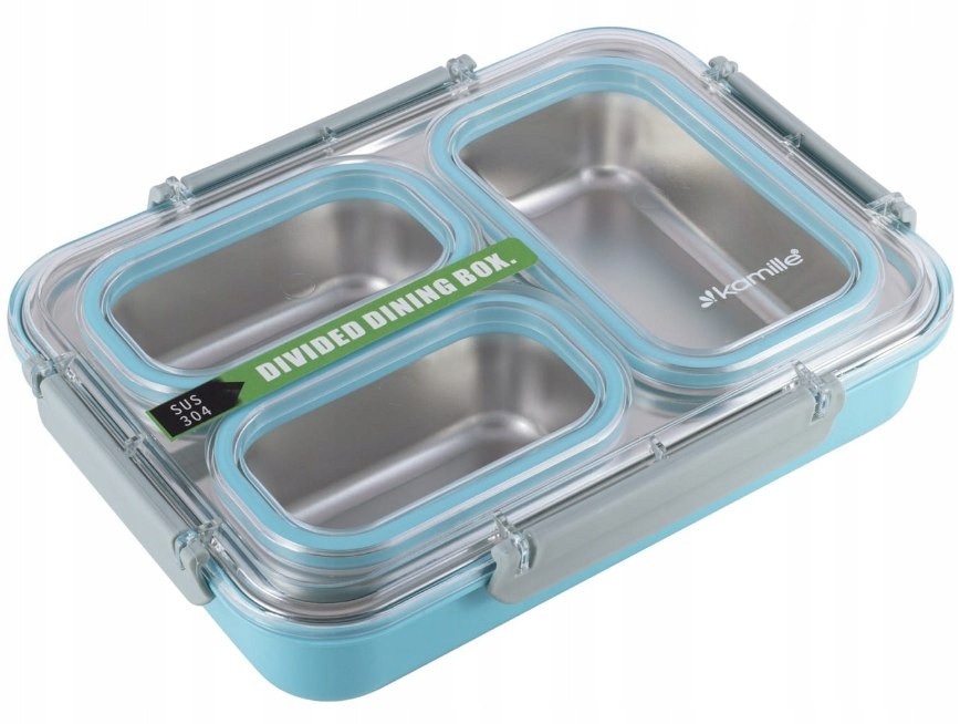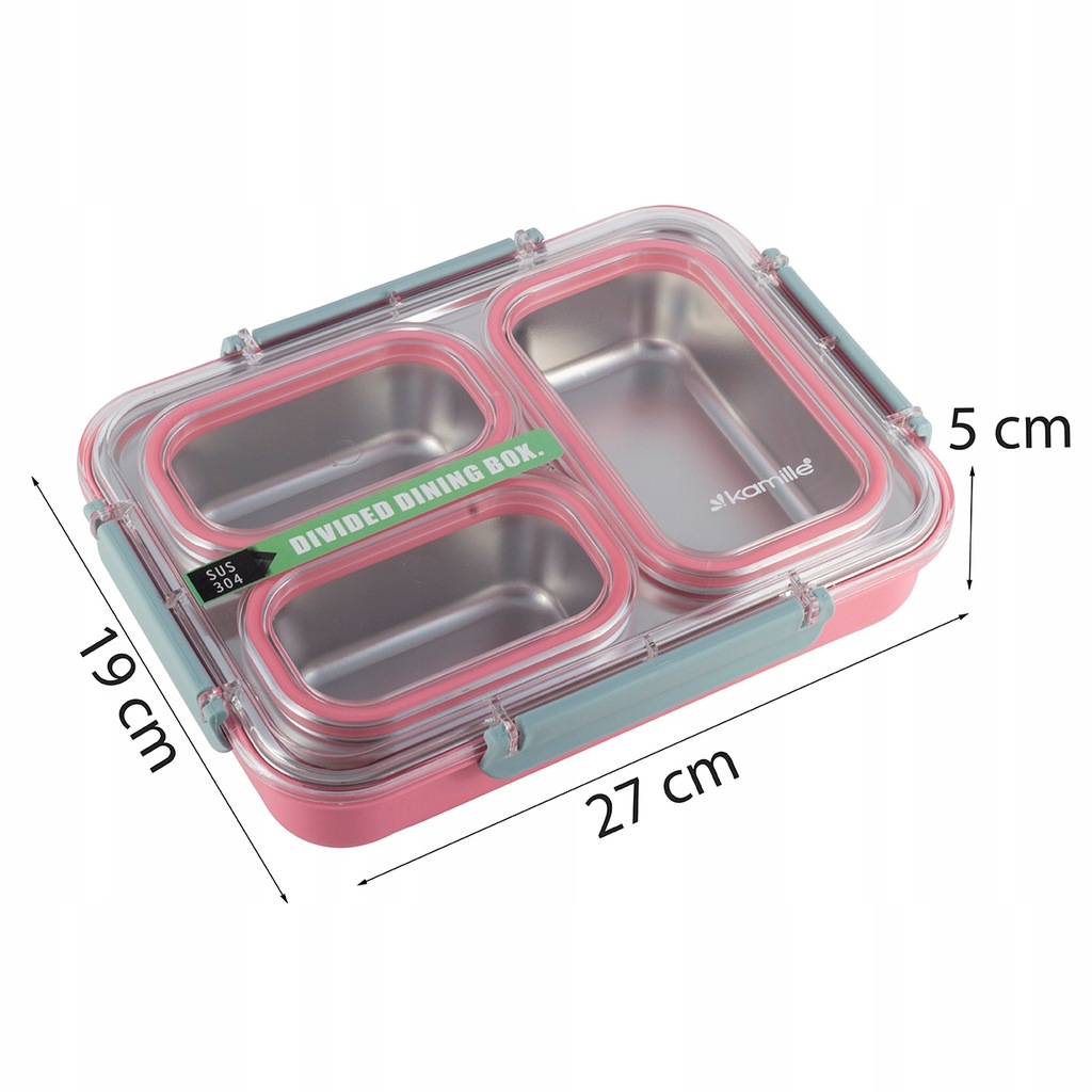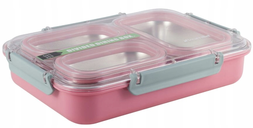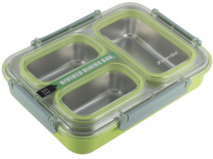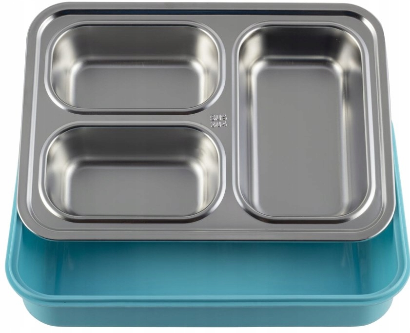 Obudowa wykonana z tworzywa sztucznego. Środek (wkładka na żywność) wykonana jest z wysokiej jakości stali nierdzewnej, która jest bezpieczna w kontakcie z żywnością oraz ma właściwości utrzymujące ciepło. Dzięki 4 przegrodom na stalowej tacy, nie musisz martwić się wymieszaniem różnorodnych produktów i będziesz mieć pewność na odseparowanie ich od siebie. Mocne uchwyty oraz dopasowane uszczelki zabezpieczą pojemnik przed otwarciem i zapewnią szczelność przenoszonemu jedzeniu.