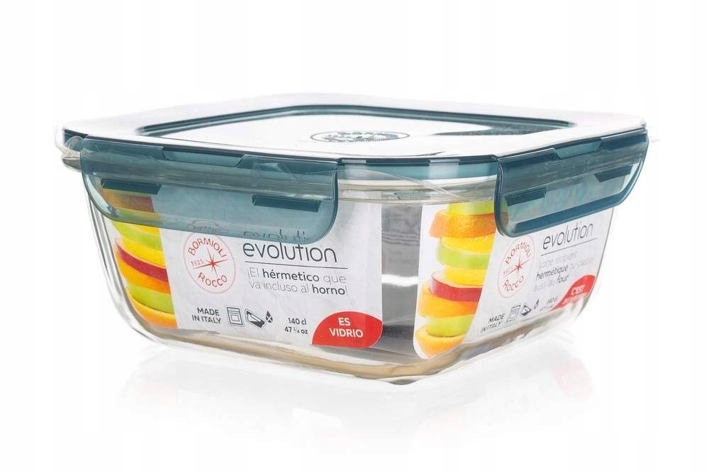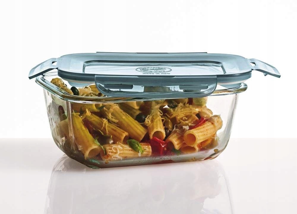 Pojemnik EVO 1400 ml, można ją hermetycznie zamknąć, szklane naczynie, które doskonale nadaje się do piekarnika a dzięki specjalnemu wieku nadaje się idealnie do transportu pokarmów. W ofercie kilka rozmiarów.