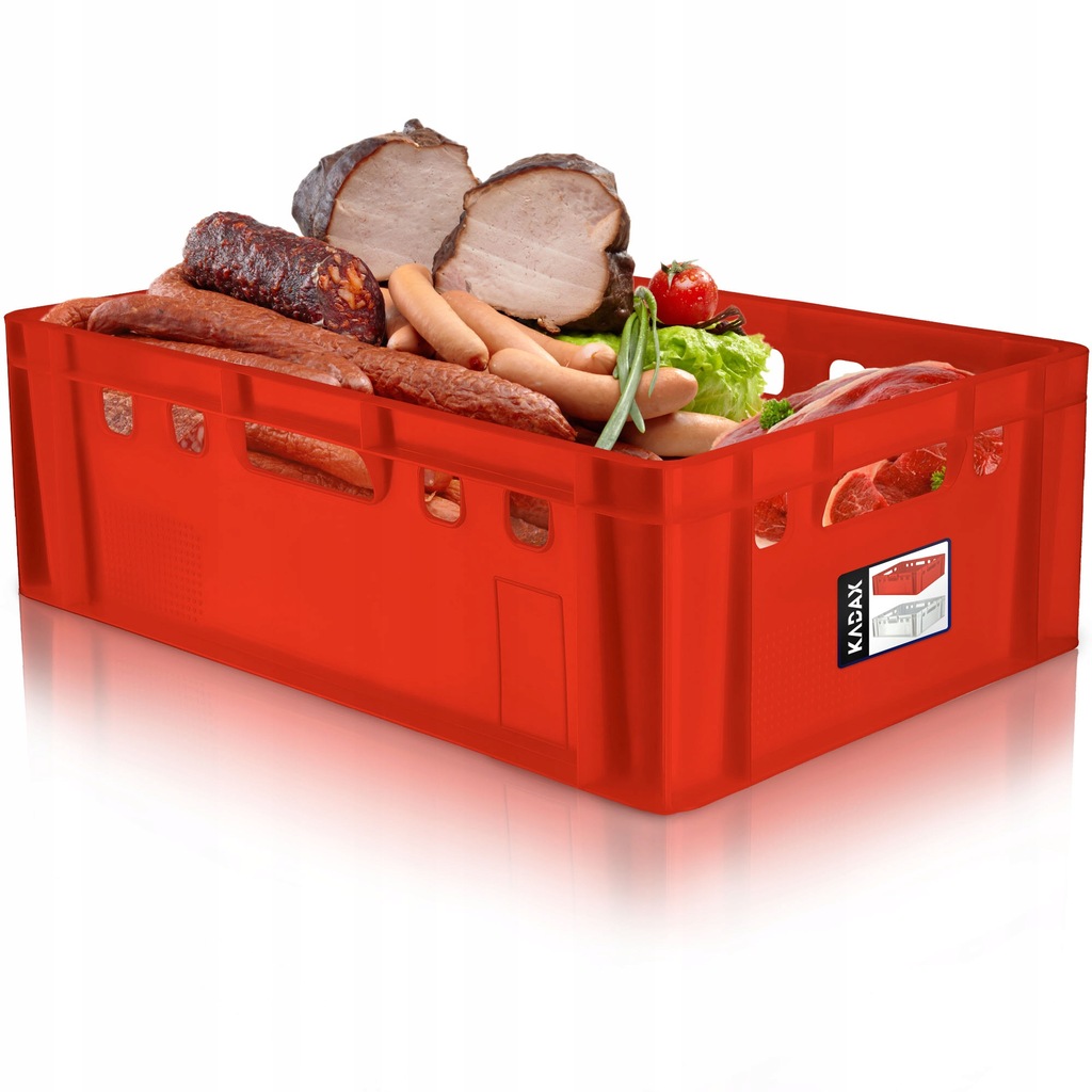 Wyprodukowany z wytrzymałego i ekologicznego tworzywa HDPE jest przystosowany do transportu żywności do 40 kg. Wyróżnia się bezwonnością oraz brakiem szkodliwych substancji. Dzięki właściwościom tworzywa HDPE mięso będzie także zabezpieczone przed wilgocią.