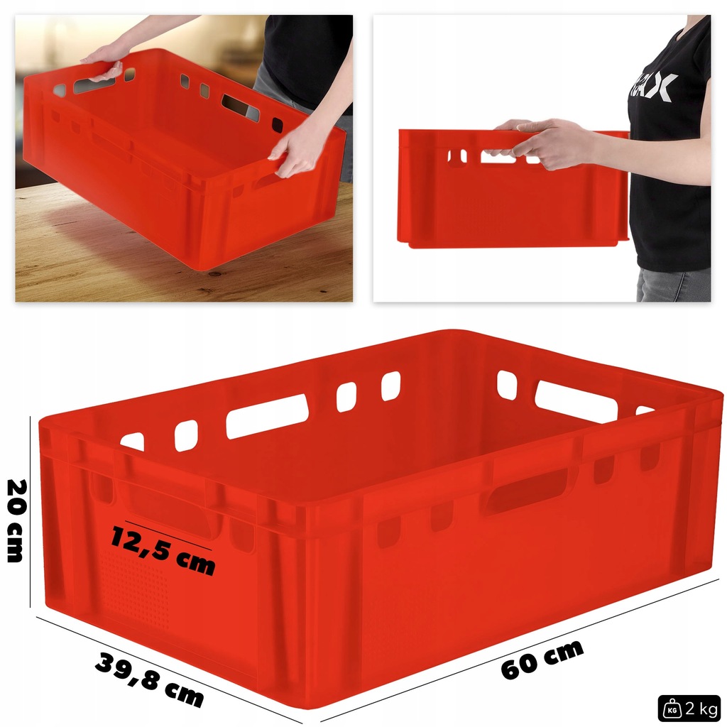 Pojemnik na mięso marki Kadax został wykonany tak, aby zapewnić nie tylko pełną świeżość dostaw, ale i komfort w trakcie rozładunku. Szerokie i wygodne uchwyty z 4 stron skrzyni ułatwiają transport, a dzięki lekkiej wadze nie ma konieczności przenoszenia dodatkowego ciężaru. Skrzynia nie będzie sprawiała Ci kłopotu: jej kompaktowe wymiary i lekkość materiału, z którego została wykonana znacznie ułatwią jej użytkowanie.