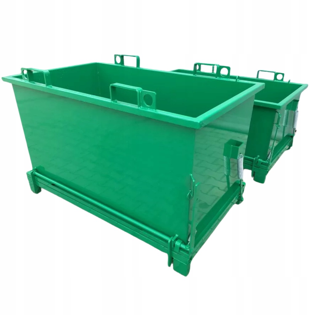 Oferowany pojemnik z otwieranym dnem to prostokątny, metalowy zbiornik wyposażony w uszy do obsługi przez wózek widłowy oraz nóżki do obsługi również za pomocą ręcznego wózka paletowego! Kontener wykonany jest z blach o grubości 3 mm na bokach oraz aż 5 mm w podstawie. Czy to ma znaczenie? Oczywiście! Dzięki temu można w nim umieścić towar o wadze nawet tony! Jeśli to za mało możemy również zaproponować Państwu wzmocnienie pojemnika w podstawie lub na całym obwodzie.