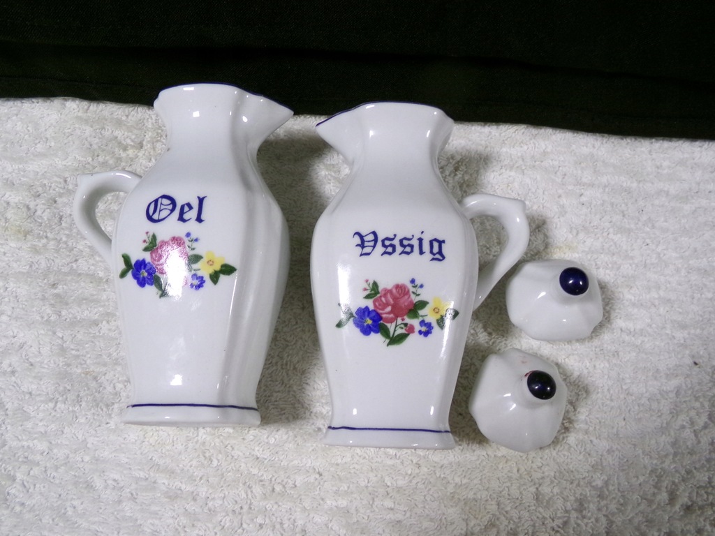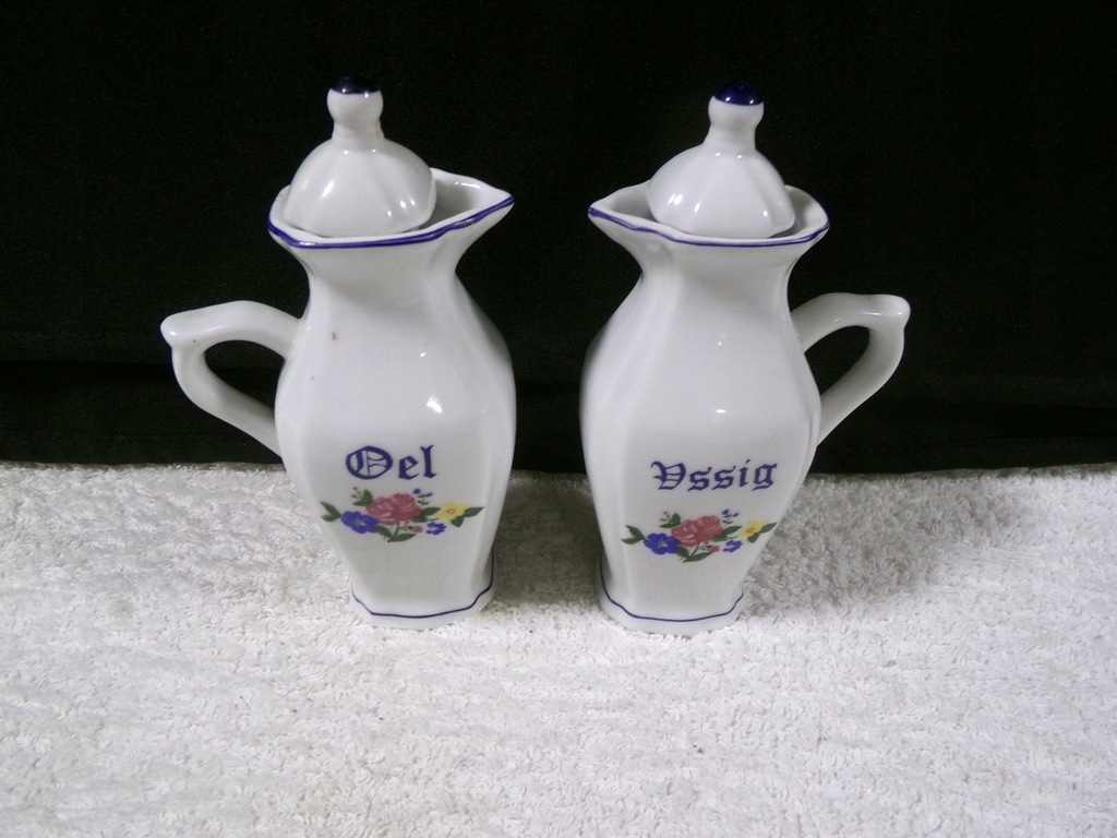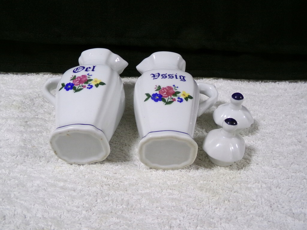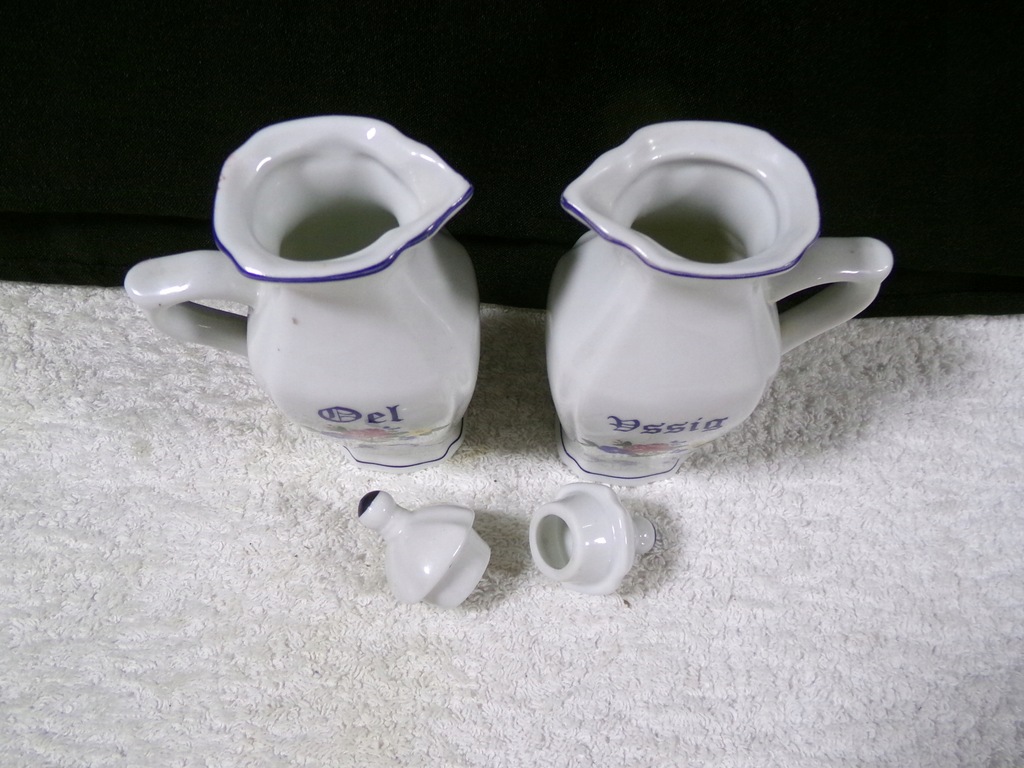 Pojemniki porcelanowe o wysokości 14,5 cm,średnicy 8x4 cm,wadze 0,29 kg .Stan zachowany bardzo dobry,bez uszkodzeń.