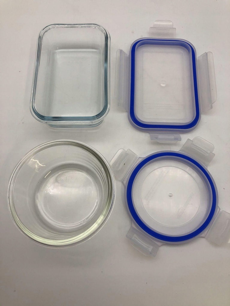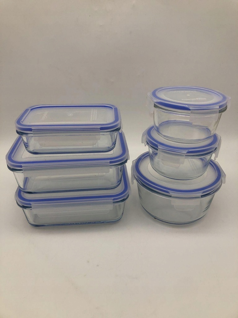 Rozmiary/kształty w zestawie 2 x pojemniki prostokątne (829 ml), 1 x pojemnik prostokątne (345 ml), 1 x pojemnik okrągły (796 ml) i 2 x pojemniki okrągłe (332 ml)