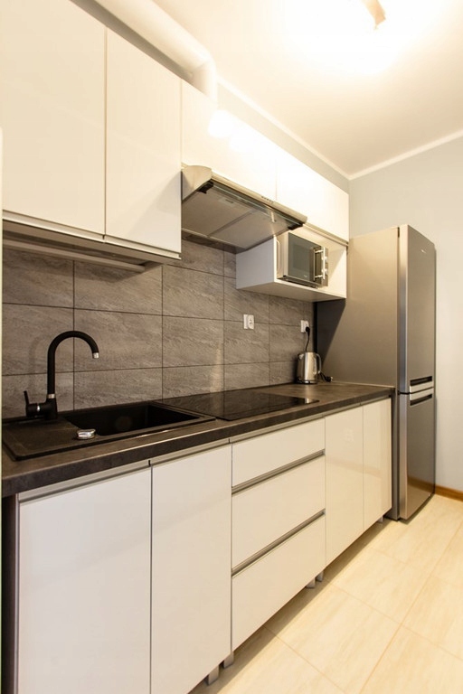 *Kuchnia: dwudrzwiowa lodówka, płyta indukcyjna, czajnik, kuchenka mikrofalowa i okap