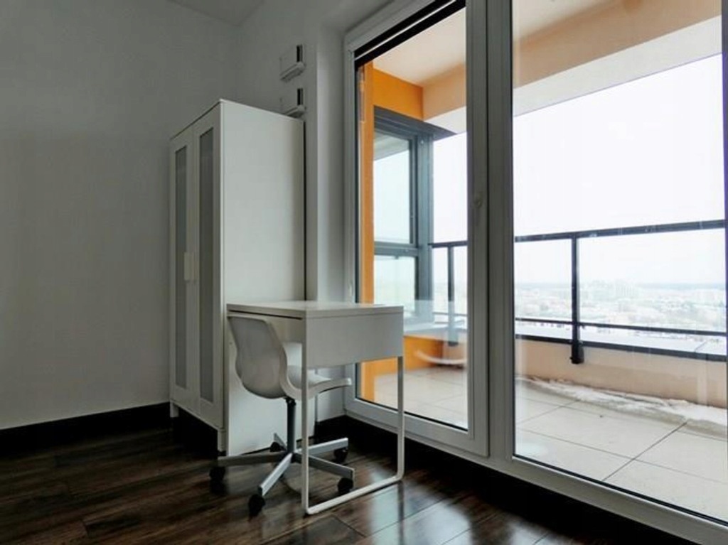 Lokal o powierzchni 63,8 m2 usytuowany na ostatnim 17 piętrze z którego można podziwiać panoramę Warszawy.