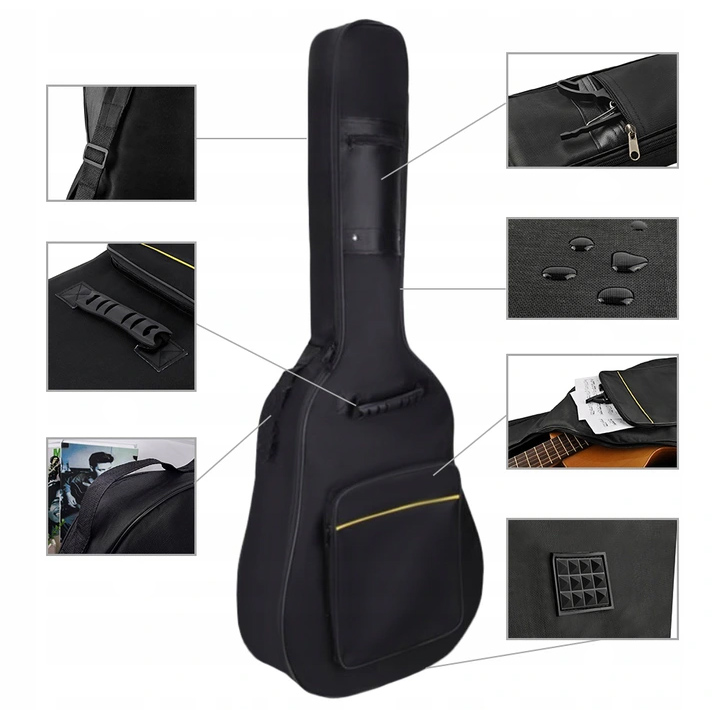 - ODPORNY NA USZKODZENIA – pokrowiec został stworzony z myślą o uczniach uczęszczających do szkół muzycznych jak i profesjonalnych muzykach, dla których podróż jest nieodłączną częścią życia. Wykonany z wodoodpornego, odpornego na zabrudzenia materiału, wewnątrz wypełnionego pianką – skutecznie ochroni gitarę przed obiciem.